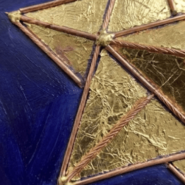 Medium: 24k Gold Leaf, Copper Wire Inlay, and Deep Indigo Oil on Wood Panel